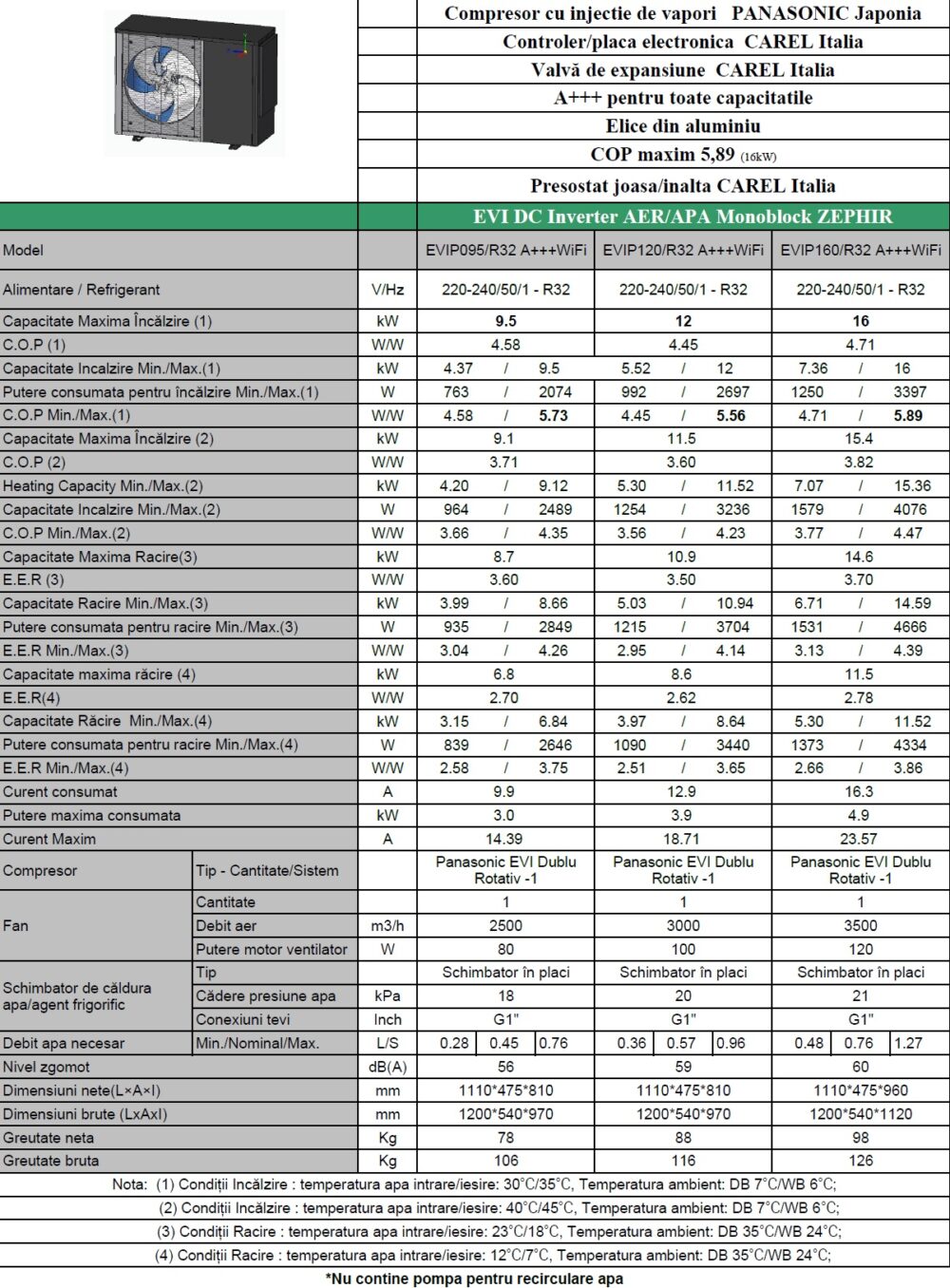 Pompa de caldura monobloc Zephir 9,5 kw compresor Panasonic A+++